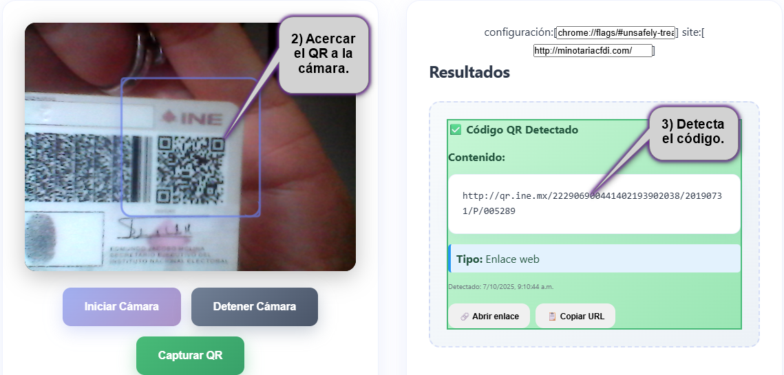 Con esta nueva mejora en miNotaría, ahora los usuarios pueden leer códigos QR directamente desde la cámara de su computadora, sin necesidad de utilizar un dispositivo adicional.